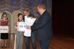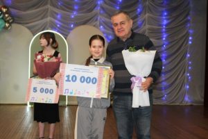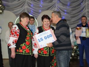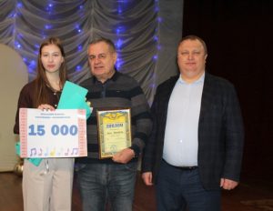 Завершальною частиною заходу стала урочиста церемонія нагородження переможців конкурсу. Для вручення відзнак і грошових премій на сцену були запрошені секретар Сахновщинської селищної ради Віталій Яковенко та голова журі Григорій Перкін.