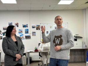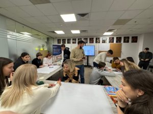 1. Всеукраїнський молодіжний центр (ВМЦ). В якому директор Центру Денис Мінін та його колега начальниця відділу молодіжної роботи Юлія Байда провели екскурсію установою, ознайомили нашу молодь із її діяльністю, ключовими програмами та напрямами роботи. Також команда Центру провела інтерактивний майстер-клас на основі авторських українських настільних ігор.