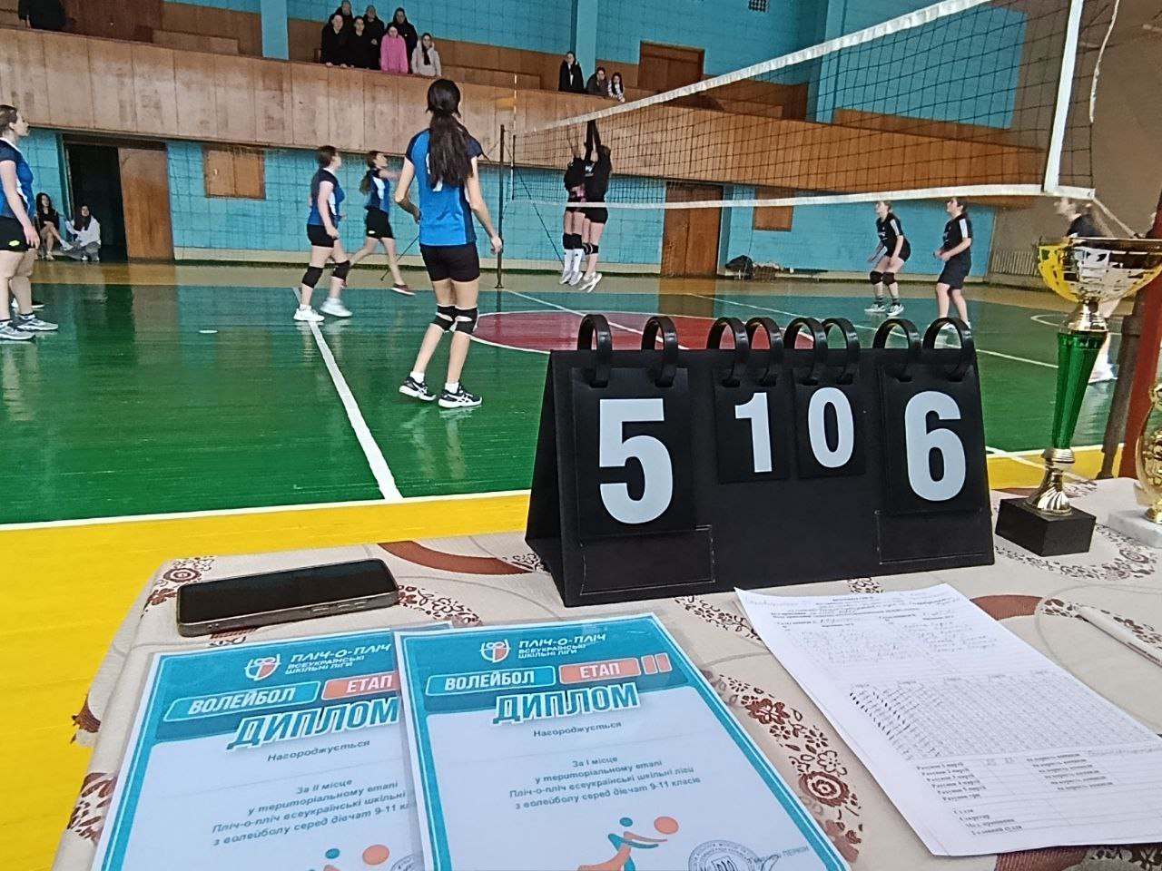 На паркет вийшли команди КЗ “Сахновщинський ліцей 2” (вчитель фізичного виховання Віктор Смірнов) та КЗ “Багаточернещинський ліцей” (вчитель фізичного виховання Олександр Пшикун), які зареєструвалися у даних змаганнях. Дівчата показали зрілу гру, боролися за кожен м’яч до кінця. Команди по черзі виходили вперед у рахунку, але в кінці кожної партії краще себе проявили гравчині з Багатої Чернещини, які і святкували перемогу з рахунком 3:0.
